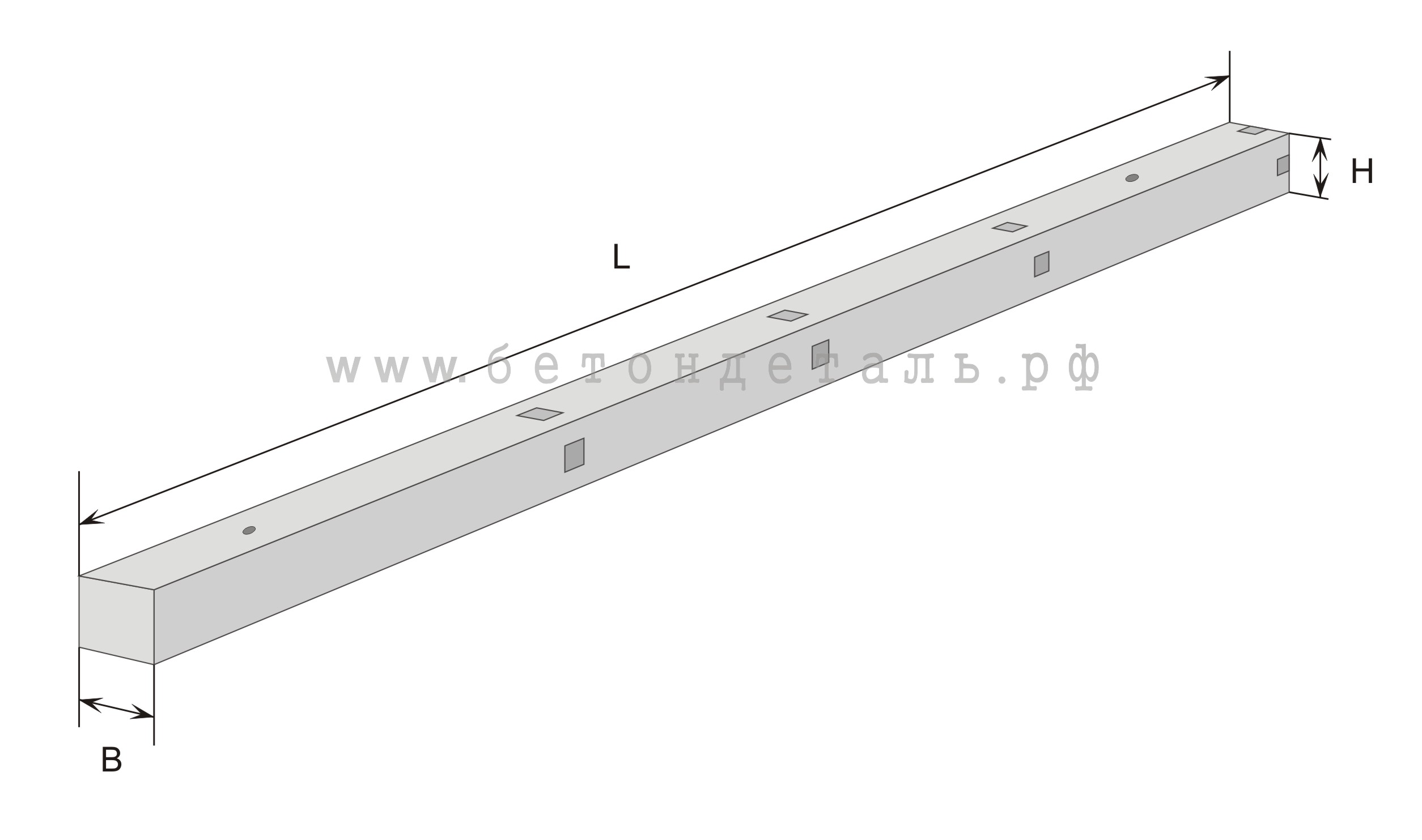 Маркировка сборного фундамента представляет собой цифробуквенный набор, включающий в себя наименование изделия, длину (дм), высоту и индекс несущей способности. Также дополнительно могут указываться условные обозначения проницаемости бетона (Н - нормальная, П - пониженная).