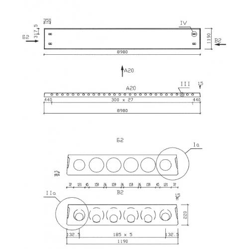 ПК 90.15  Многопустотные плиты перекрытий межвидового назначения (Серия 1.041.1-5).
