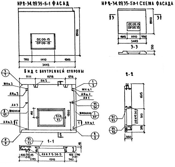 НР2-34.29.35-5л-1 Наружная стеновая панель рядовая по Серии 1.132-1.